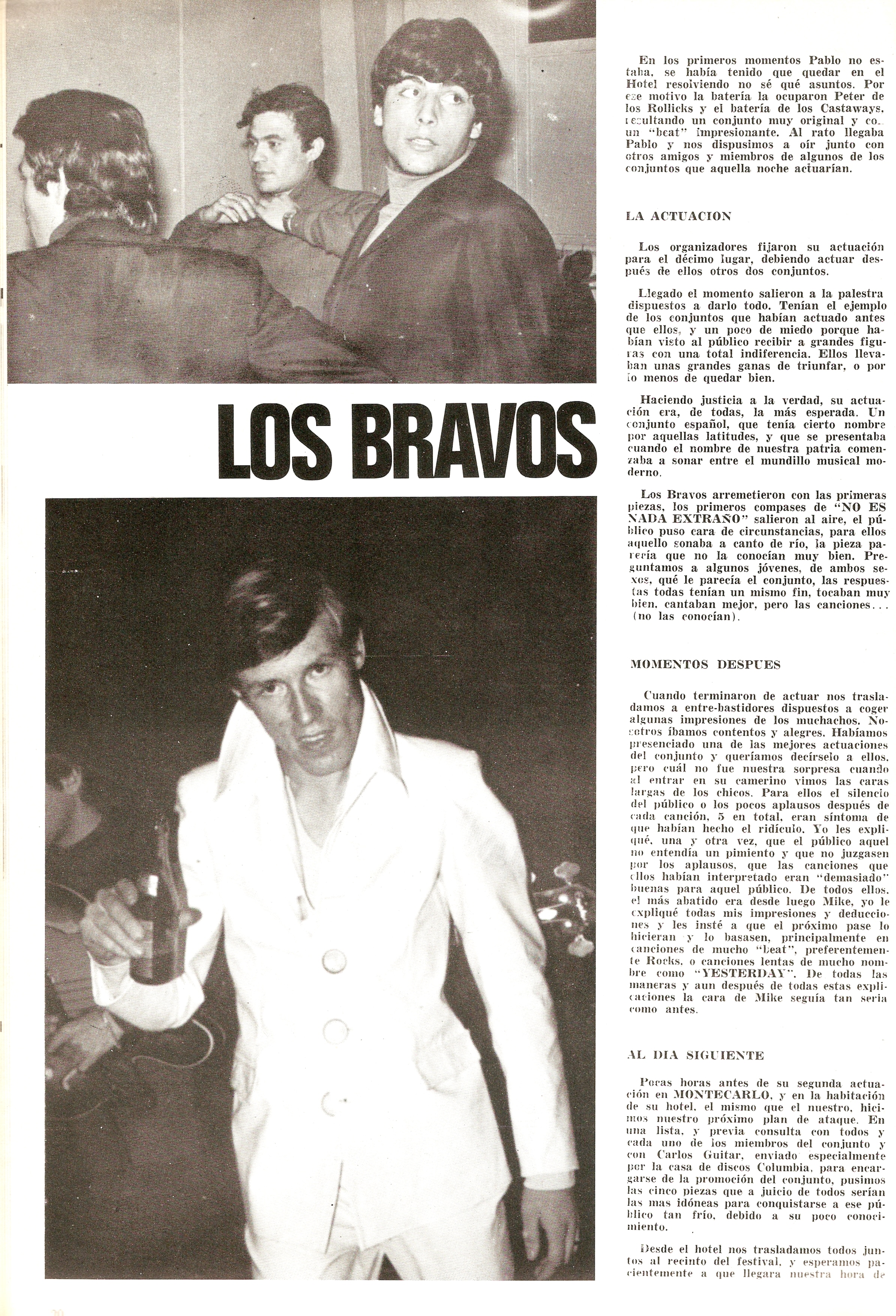 Pero justo antes la tragedia asomó en la carrera del grupo. El 29 de abril de 1968 el teclista Manolo Fernández sufre un grave accidente de coche en Mallorca cuando volvía de madrugada a Valldemossa tras celebrar con el resto del grupo la boda de su compañero Miguel Vicens en el centro de Palma. A raíz de ello, su esposa embarazada que le acompañaba muere en el acto, mientras que él sufrirá heridas leves. Inmerso en una profunda depresión por su autoinculpación por el suceso, y tras un fracasado intento de suicidio días después, finalmente se pegará un tiro de escopeta en el pecho en su casa de Madrid el día 20 de mayo, dejando antes una carta desgarradora en la que justifica su dramática decisión. De este terrible revés el grupo trata de salir adelante fichando al teclista británico Peter Solley (Chris Farlowe, The Thunderbirds, Terry Reid…). Alguien tuvo la burda idea de presentarlo en público encapuchado, dentro de un concurso para averiguar su identidad; lo que suscitó fuertes polémicas, como la de que el tipo en cuestión fuera el mismo Manolo Fernández que no habría muerto en realidad. Fue un gran error que dañó la imagen de Los Bravos en su época de máximo esplendor. Como resultado de ello, Solley abandonará pronto la banda, siendo sustituido por Jesús Gluck.