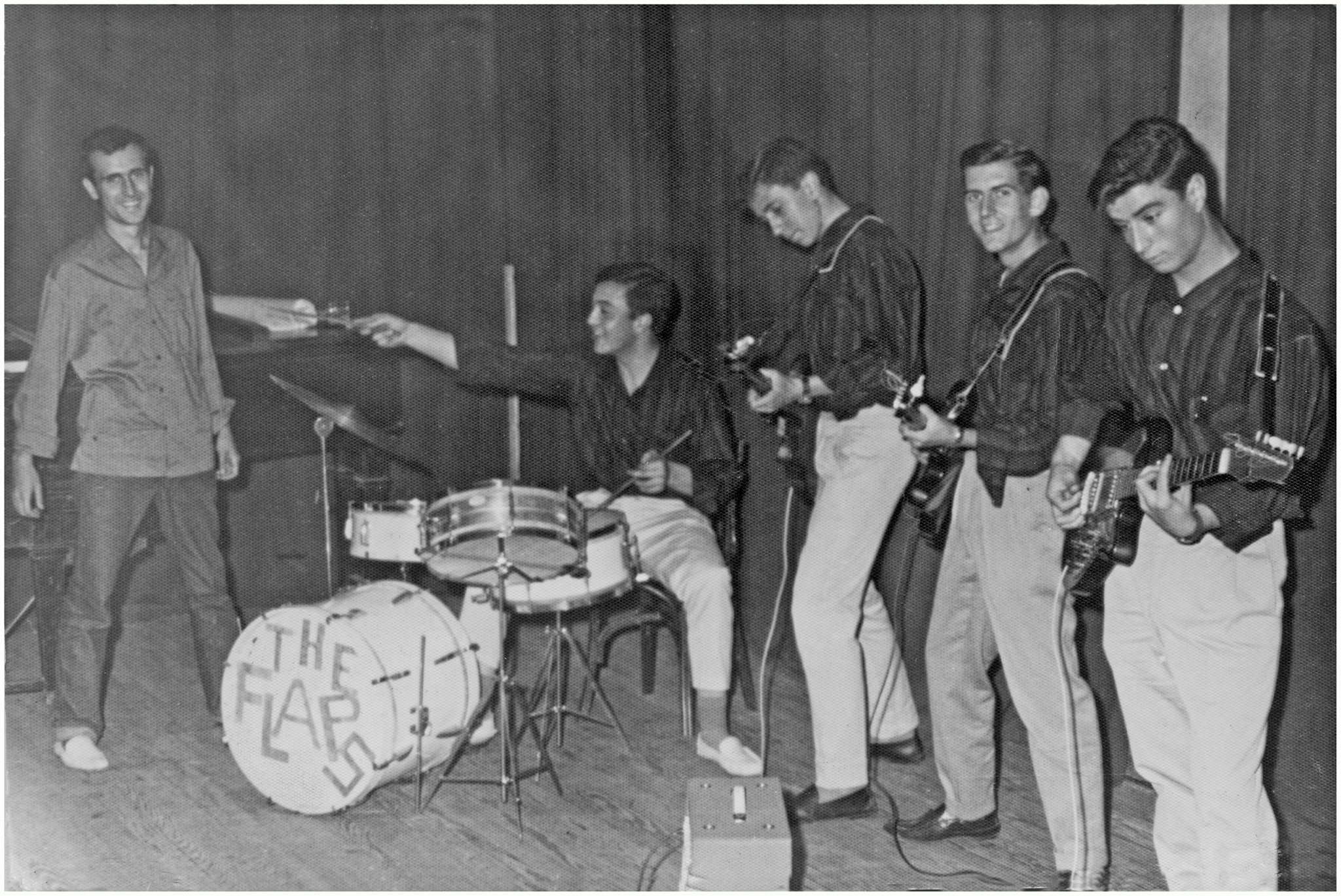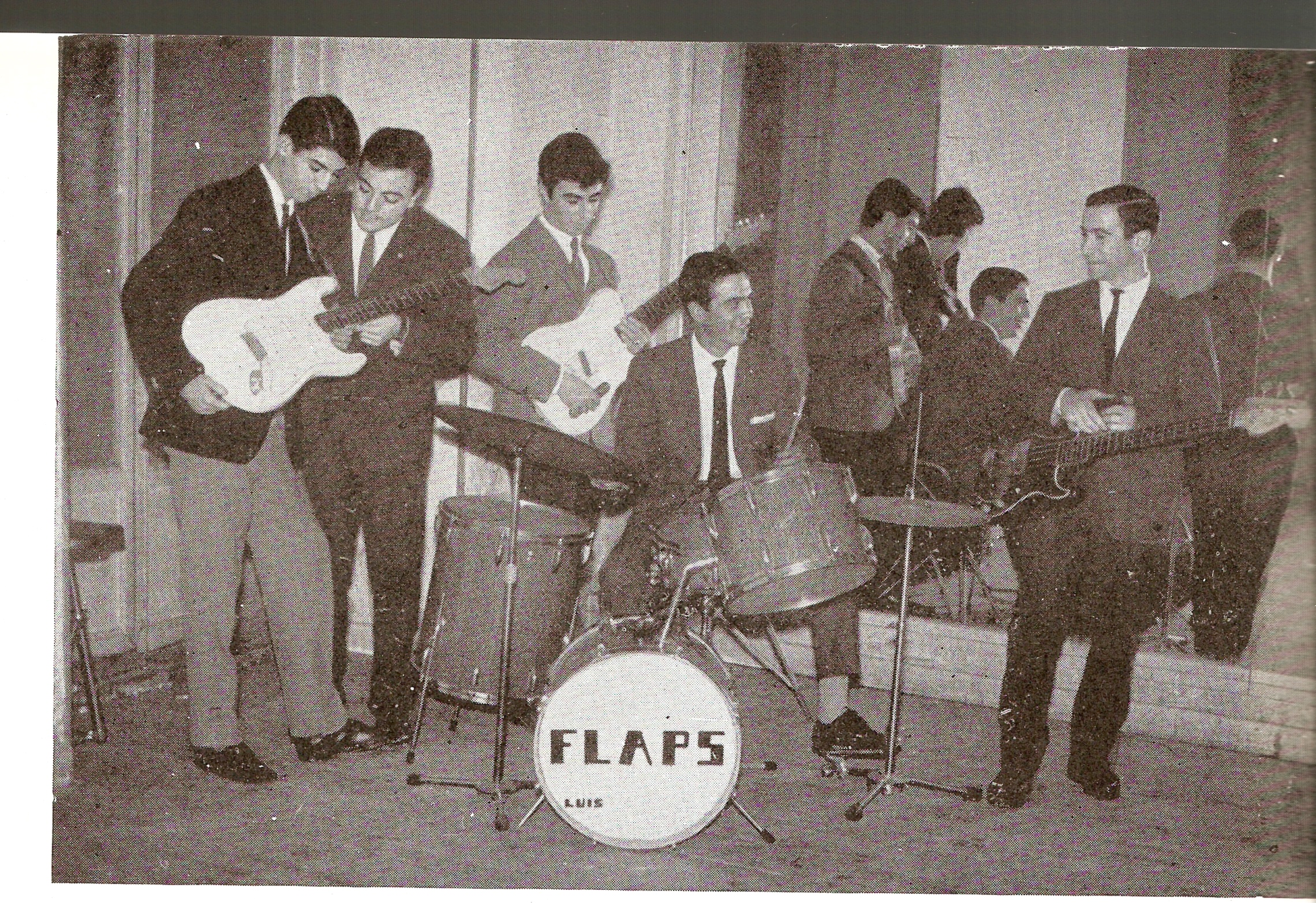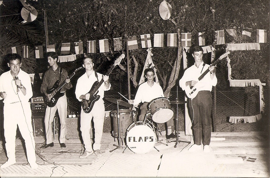 En las primeras actuaciones, Los Flaps tocaban en las oficinas americanas de Torrejón, sitas en las Calle Fuencarral, en el edificio de los cines ROXI.
